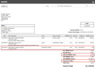 - Depending on the Invoice template used, below the invoice line items, the total number of adjusted hours for all adjusted invoice items is displayed and above the Grand Total, the total amount credited from all adjustments on the invoice is shown.