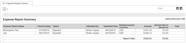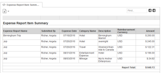 Description A list of submitted Expense Reports based on the selected criteria. The amount column in the report shows the total for the related Expense Report.