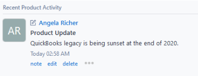 The Activity tab is the working area of the entity. You can view notes, attachments, and other associated items that have been added to the entity, and create new ones. To open the page, use the path(s) in the Security and navigation section above.