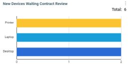 • New devices and devices created by Datto BCDR, Datto Network Manager, or Datto RMM have Reviewed for Contract cleared. The contract review status is available as a filter in searches and dashboard widgets such as this one on the Datto RMM Devices dashboard tab. This allows you to easily identify any devices that have not been reviewed.