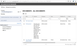 - To manage document categories and sub-categories, click Manage Documentation. Refer to Documentation Management administration.