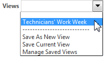 - Click the drop-down list for the Views field on the Dispatch Calendar menu. The Views drop-down list will display: