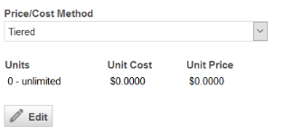 Refer to Setting up volume-based and tiered pricing. Billing Rules: The product's Price/Cost Method cannot be overridden. If the product is tiered then the billing rule will also be tiered, but the unit breakpoints, price, and cost can be overridden on the billing rule. |