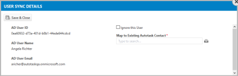 - To manually map the user to an existing Autotask contact, click the selector icon