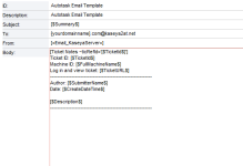 In order to forward Kaseya Service Desk alerts to create tickets in Autotask, you must create an email template and set up a ticket-forwarding procedure in Kaseya. Complete these steps after your Kaseya Service Desk is configured (this should be completed by Kaseya) and after you have completed Steps 1 through 6 in the topic The Kaseya RMM Extension.