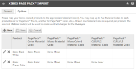 After you have set up the Material Codes you will use for PageConnect/XPPS billing, all printer models in the import file must have their base product mapped to one or more Material Codes that reflect the print output types being metered for that printer.