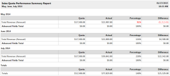 Description Comparison between sales quota and actual performance values by revenue stream and date range. This report is a pivot of the Sales Quota Performance report.
