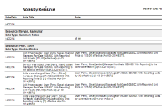 All system, task, ticket, and project notes for a selected date range, sorted by resource and note type. |