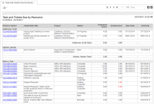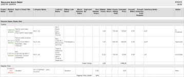 Details about tasks, tickets and regular time for specified resource(s) and a specified date range, sorted by resource or organization and project. This report shows both pre-billed and billed work. |