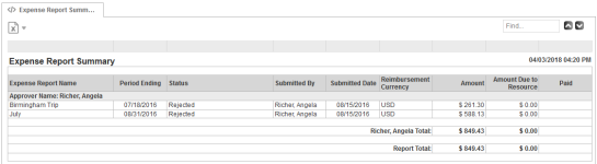 NOTE  If you group this report by Approver Name, submitted expense reports will display grouped by their approver or rejector.