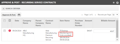 If units were added, the additional charge to the customer is shown in black. Future recurring Approve and Post items will be adjusted to the new pricing, as well.