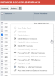 Select at least one created or scheduled instance to activate the Delete button. You can delete instances and scheduled instances with due dates in the past or future, as long as no labor has been tracked on the ticket. Instances with a due date in the future and scheduled instances can be re-created, but past instances cannot be recreated. |