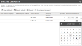 If you did not add an estimated arrival date when you added the item to the PO, you get a second chance when you submit the purchase order.