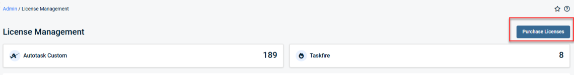 The tiles shown will display the total number of active, paid license types within your Autotask database.