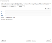 Reports don't have to be run right when they are needed. You can plan ahead and schedule reports to be executed and delivered to email recipients either immediately, or on a recurring schedule.