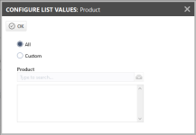 - All indicates that the field has a menu or selector that currently allows the user to choose from all possible items.