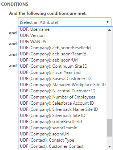 UDFs appear at the end of the list of attributes, preceded by UDF: or UDF (Entity Name):. The operators available for UDFs in workflow rules and the field type of the value depend on the UDF type.