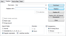 - To quickly jump from one occurrence to the next, click the Find icon and search for "\r\n". Do not enter anything into the Replace with field.